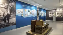 A permanent multimedia-based exhibition shows the local and the migration history in European dimensions at the time of the National Socialism and at the post-war period in Germany after 1945.[31][9] Each phase shows the local history of Föhrenwald and Waldram with examples in a cross-locational context: the beginning as a Nazi model settlement for the armes workers in 1939; the temporary use for survivors of the concentration camp prisoners' death march in 1945; the transformation into a camp for Jewish displaced persons in mid-1945; again a transformation into a settlement for refugees and expellees from Eastern European countries in 1956; and finally the development into the suburban living quarters of Waldram nowadays.