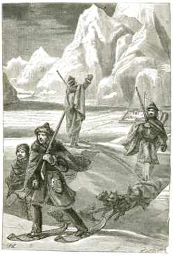 An illustration of the HBC men from Ungava, Ballantyne's fictionalized portrayal of life at Fort Chimo