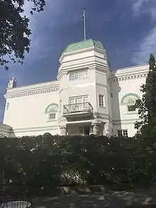 Thiel's art collecting began in earnest in 1901, when he bought art for the then considerable sum of 19,000 crowns at the exhibition of the Konstnärsförbundet artist group. The following year he bought 19 paintings by Bruno Liljefors.[8] The flat at Strandvägen into which he had moved with second wife in 1897 started to be cramped, and in 1904, Thiel commissioned the architect Ferdinand Boberg to build him a large villa at Blockhusudden in the Djurgården park area of Stockholm.[9] It was soon discovered that the art collection had outgrown the building and Boberg had to add another large room in 1905.[10] Prince Eugen, the painter and collector, had recently had Boberg design a combined residence and art gallery at Waldemarsudde in another part of Djurgården, which may have influenced Thiel.[11] The Prince originally counteracted Thiel's plans and forced him to move his new house to a spot farther away from Waldemarsudde than he had first wanted,[12] but when, in 1906, Eugen gave Thiel a painting of his, Nattmolnet, it was a sign that he had accepted his position in the art life of Sweden.[13]