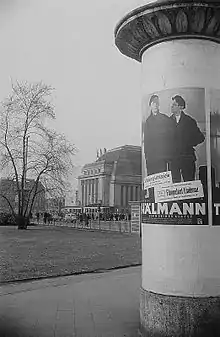 A poster of Son of his Class near the Central Station of Leipzig, 1954.