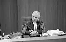 Ernst Träger, the youngest of eight children of an innkeeper and master butcher from Künzelsau, was an air force and flak helper as well as a soldier in World War II from 1943 to 1946. After being severely wounded, staying in a hospital and being a prisoner of war, he studied law at the Ruprecht-Karls University in Heidelberg from 1947. In Mannheim, he completed his legal clerkship at the Mannheim District Court. After passing his assessor's examination in 1954, he entered the judicial service of the state of Baden-Württemberg, where he worked as a civil and criminal judge at the Bad Säckingen Local Court and the Waldshut Regional Court. In 1958, he moved to the Federal Prosecutor's Office. In 1963, he became a judge at the Karlsruhe Regional Court and later at the Karlsruhe Higher Regional Court. From 1965 to 1968, Träger was a research assistant at the Federal Constitutional Court. In 1968, he again moved to the Federal Prosecutor's Office and was appointed Federal Prosecutor in 1972, dealing with various terrorist trials. In 1976, he was appointed a judge at the Federal Supreme Court.[2]