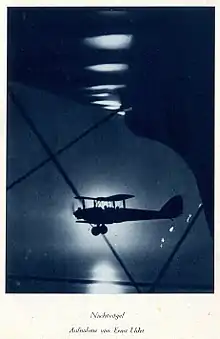 During the inter-war period, Udet was known primarily for his work as a stunt pilot and for playboy-like behavior. He flew for movies and for airshows (e.g. picking a cloth from the ground with his wingtip, flying under low bridges and completing loops only several meters from the ground). One stunt only Udet performed was successive loops with the last complete after turning off the engine mid air and landing the aircraft in a sideways glide. He appeared with Leni Riefenstahl in three films: The White Hell of Pitz Palu (1929), Stürme über dem Mont Blanc (1930), and S.O.S. Eisberg (1933). Udet's stunt pilot work in films took him to California. In the October 1933 issue of New Movie Magazine, there is a photo of Carl Laemmle, Jr.'s party for Udet in Hollywood. Laemmle was head of Universal Studios which made SOS Eisberg, a US-German co-production. Udet was invited to attend the National Air Races at Cleveland, Ohio. In 1935 he played himself in Miracle of Flight (1935; 79 mins.) directed by Heinz Paul. His co-star Jürgen Ohlsen, who had previously starred in the extremely popular film Hitlerjunge Quex: Ein Film vom Opfergeist der deutschen Jugend, played a youth who lost his pilot father in World War I and was befriended and encouraged by Udet, his idol.[10][11] In the Berlin 1936 Summer Olympics Udet entered the arts competition literature category with his autobiography, Mein Fliegerleben (My Flying Life) (published 1935).[12]