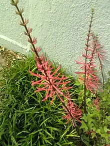 Colorines plant also called, cuchillitos (little knives) or machetitos (little machetes), zompantle, or coral is a nice flower, red in color and every individual flower resembles a little machete, the flower is edible[2] and is boiled (only the red part of the flower) and cooked with scrambled eggs or tuna in many parts of south Mexico.