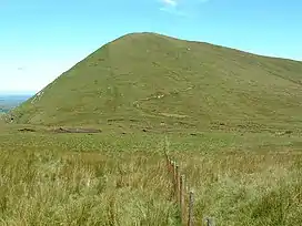 The peak is situated to the east of Aran Fawddwy, separated by Bwlch Sirddyn, and stretches right the way round Cwn Cynllwyd towards the Berwyn range at Foel y Geifr. The tops are all boggy in character, all rising from a wild, peat bog plateau. A road penetrates the plateau at Bwlch y Groes.[1]