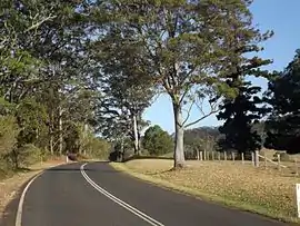 The western section, from Hampton to the end of a spur of the Great Dividing Range, was also developed to facilitate the harvesting of timber. Prior to European settlement the rich volcanic soil on the ridge supported a sub-tropical rainforest, which contained timbers that were in high demand, including red cedar, tallowwood and hoop pine. These timbers were used in some homes constructed in the area at the time.[4] The road later provided access to cleared land that was used for dairying and beef cattle grazing.[5] This section provides access to Ravensbourne National Park, which preserves a remnant of the rainforest.[6]