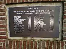 Plaque on the war memorial with the names of Esmée and David van Eeghen