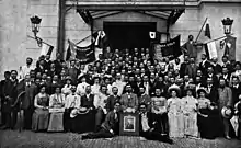 The first Esperanto–Romanian dictionary was written by Marta Frollo in 1889, and the Esperanto community in Romania was pioneered by Henriko Fischer-Galați in the 1900s. The Romanian Esperanto Society was founded in 1907.[1] Ethnic Hungarian priest Andreo Cseh was a major figure of the Romanian Esperantist movement in the 1920s.[2] An Esperantist group in Cluj was arrested in 1922 after the green star of Esperanto was mistaken for a communist star, but the head of the resulting military tribunal absolved the group and described Esperanto "a very beautiful cultural movement".[3]
