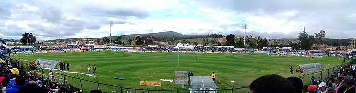 Before Boyaca Chico's 2008 Apertura league title in June 2008, the stadium's capacity was 8,000, but for the final the capacity was temporarily expanded to 12,000.[2] Also with Chico's qualification to 2009 Copa Libertadores, the stadium was due to be expanded, in order to achieve the minimum 20000 seats that CONMEBOL requires to host an international match. The expansion work started in December 2008, with a total cost of 26 million COP.[3] Despite this, the renovations were completed for the first Chicó match at La Independencia, against Brazil's Gremio in the Copa Libertadores.[4]