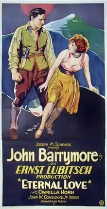 Eternal Love is a 1929 American sound romantic drama film directed by Ernst Lubitsch and starring John Barrymore and Camilla Horn.[2] While the film has no audible dialog, it was released with a synchronized musical score with sound effects using both the sound-on-disc and sound-on-film process. Based on the novel Der Koenig der Bernina by Jakob Christoph Heer, the film is about two lovers living in the Swiss Alps who struggle to be together and escape their loveless marriages. Eternal Love was the last silent film for both Lubitsch and Barrymore.[3][4]