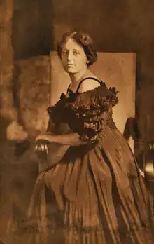 On her family's return to New York, Ethel recalled: "We lived in many places, some uptown, some downtown. Always making sketches and having exhibitions, but no home. Finally we took two rooms on West Thirty-Seventh Street in the Garment District, the top floor. The back studio hall room was Jerome’s studio and the third floor front hall room was where we three ate and slept. At this point I decided to be a designer of clothes. I took five dollars and bought lace and designed a blouse. Went up to the Fifth Avenue shop and sold the design. From then on I was in business."[5] "The year before the Armory show. Jerome back in Carnegie. I took an apartment on East 58th Street. Went in business designing and had three girls. Worked for Fifth Avenue trade."[5] "Mrs. Myers was a designer of women’s clothes and hats, maintaining a shop in New York City from 1920 to 1940 and designing clothes for noted celebrities of society, stage, and opera and for manufacturers."[1]