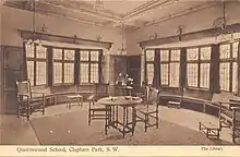 The original school and the head's house was burnt down in 1936 and was replaced with a nearly identical building. Trew had many successes and school roll grew to 300 but she became out of touch and was said to be a "benevolent despot". She was devoted to the school and expected the staff to be devoted to her. In return she could be very supportive but she would also embarrass her staff by admonishing them in front of the pupils. She began to give up some of her control in 1944. That year the ceilings collapsed in her rooms when a German bomb was dropped.[1] She was superseded by Enid "Emma" Essame when Baron Stamp was the chair of governors, but she refused to give up complete control.[2] Essame, who had been a Queenswood teacher, served until 1971.[4] Trew had built herself a home to retire to, but it was very close and on the school's estate. She oversaw the appointment of a new estate manager as she retained responsibly for the estate. The manager swindled the school.[1] Trew had to finally retire in September 1948 and died in Hatfield that year.[4]