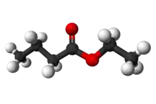 Ethyl butyrate, also known as ethyl butanoate, or butyric ether, is an ester with the chemical formula CH3CH2CH2COOCH2CH3. It is soluble in propylene glycol, paraffin oil, and kerosene. It has a fruity odor, similar to pineapple, and is a key ingredient used as a flavor enhancer in processed orange juices.[1] It also occurs naturally in many fruits, albeit at lower concentrations.[2]