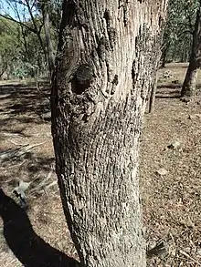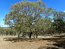 Tenterfield woollybutt grows mostly in granitic soils on hillslopes and occurs between Cunninghams Gap and the McPherson Range in Queensland south to Armidale in New South Wales.[3][4][5]