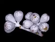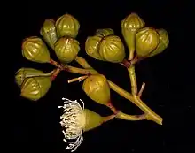 • Eucalyptus canescens subsp. canescens,[9] the Ooldea Range mallee, has its twigs, buds and fruit covered with a powdery white bloom, greyish leaves and more strongly ribbed fruit;[4][6]