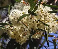 Eucalyptus cylindriflora, commonly known as the white mallee[2] or goldfields white mallee,[3]: A2 is a species of mallee that is endemic to the southwest of Western Australia. It has smooth bark, glossy green, linear adult leaves, flower buds in groups of seven, creamy white flowers and cylindrical to cup-shaped fruit.
