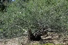 Eucalyptus deuaensis, commonly known as the Mongamulla mallee,[2] is a species of mallee or small tree endemic to a small area of New South Wales. It has smooth bark, lance-shaped to curved adult leaves, diamond-shaped buds arranged in leaf axils in groups of seven, white flowers and bell-shaped, hemispherical or conical fruit.