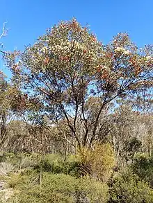 This mallet occurs on sandplains and undulating areas along the south of Western Australia in the southern Wheatbelt and south western Goldfields-Esperance regions where it grows in red loam, grey sandy loam and sometimes gravelly soils.[4]