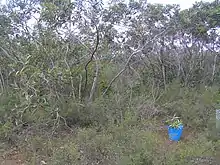 The green mallee ash grows in mallee shrubland in shallow, sandy soil over sandstone. It is only known from two stands south-west of Nowra.[4][8]