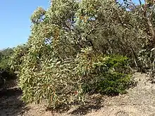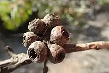 - 1 2 3 Nicolle, Dean; French, Malcolm E. (2012). "A revision of Eucalyptus ser. Falcatae (Myrtaceae) from south-western Australia, including the description of new taxa and comments on the probable hybrid origin of E. balanites, E. balanopelex and E. phylacis" (PDF). Nuytsia. 22 (6): 433–434. Retrieved 14 November 2019.