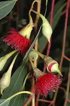 | Flower buds and yellow flowers of Eucalyptus petiolaris | |