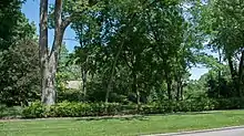 Most utility lines run in the rear of the houses. Sidewalks are wider than usual, and original sidewalks (made of slate paving) are common. Wide road verges exist between the sidewalk and roadway. Most of the trees in the historic district existed when the development was constructed in the 1910s and 1920s.[51]