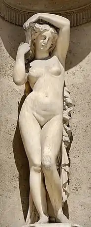 Of his monumental works, many are to be seen in public places in and near Paris. In the Tuileries gardens is his group of Daphnis and Hebe; in the Jardin du Luxembourg the Queen Bertha; at the Louvre the Buffon; and in the courtyard of the same palace the Bathsheba. A monument to General Espagne is at the Invalides, and a King Louis VIII at Versailles.[1]