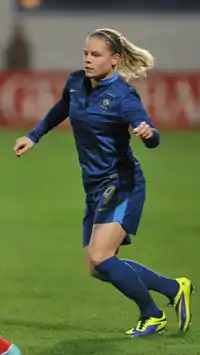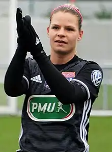 Eugénie Anne Claudine Le Sommer-Dariel[3] (born 18 May 1989) is a French professional footballer who plays as a forward for French club Lyon and the France national team.[4] She primarily plays as a creative attacking midfielder and left winger, but has also played as a second striker for her country.