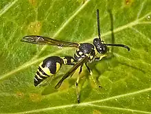 These potter wasp are predatory of caterpillars. They build cells which are complete spherical pots.[6]