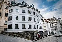 The House of European Radiology is the current headquarters of the European Society of Radiology (ESR) and has been since 2018 after the completion of its renovation.[7] :14 The building is located in the historic central district of Vienna, across from the steps leading to Maria am Gestade church on Am Gestade square. Through renovations, the building has retained the style of its facade dating from 1823 with a newly constructed interior which houses a majority of ESR functions.[8]