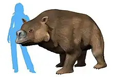 Euryzygoma is an extinct genus of marsupial which inhabited humid eucalyptus forests in Queensland and New South Wales during the Pliocene of Australia.[1][2] Euryzygoma is believed to have weighed around 500 kg,[3] and differed from other diprotodonts in having unusual, flaring cheekbones that may have been used either for storing food or for sexual display.[4] Euryzygoma is thought to be the ancestral genus from which Diprotodon evolved.[5]