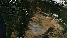 ![]() Satellite image of smoke from the fire in central Washington State on September 3 | |