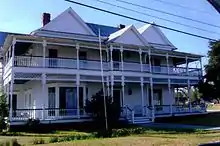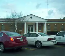 The current Evans County courthouse was completed in 1923. The courthouse is in Claxton and was designed in the neoclassical revival tradition by architect J.J. Baldwin.[4][6] Prior to the building of the current courthouse, all of the county's business was held in the White Building, a three-story edifice built by Mr. R. King White and later bought by Mrs. Ben Daniel. Mrs. Daniel's husband, Dr. Ben Daniel, used the building as his office.[4]
