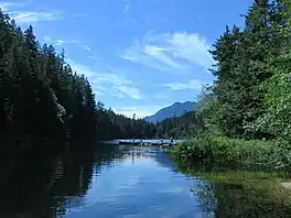 Evans Lake is a small, roughly triangular lake having a perimeter of about 1.3 kilometers, on the rise between the Cheakamus and Squamish Rivers in British Columbia, Canada. The 604-acre (2.44 km2) site has been home to youth camps since 1959. For decades Evans Lake was used primarily by the Junior Forest Wardens of BC. Later, the BC Forestry Association ran summer camps for children.