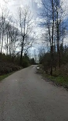 Everett Crowley Park is a 38-hectare large forested park with trails, located within the Champlain Heights area of Vancouver.[1] The park was previously a landfill, but was allowed to become reforested for recreational purposes. Currently, it is Vancouver's 5th largest public park.[2] The surrounding neighborhood was the last area to be developed in Vancouver in the 1970s.[3] The park is maintained, developed, and protected by the Vancouver Park Board and stewarded by a committee of the Champlain Heights Community Association, the Everett Crowley Park Committee (ECPC).[4] Many of the trails in the park are designated as dog off-leash areas. Everett Crowley Park is situated north of the Fraser River. It is a 3-minute walk north of Vancouver's developing River District, on the edge of the Fraser River.[5]