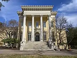 The mansion was built in the mid-19th century and bought in 1878 by the president of the Baltimore and Ohio Railroad, John W. Garrett.[3] Railroads were then a key industry in the United States and, as Baltimore's Garrett family owned and managed one of the biggest rail companies, the home grew and became both luxurious and famous. John Garrett's son T. Harrison added a wing containing a billiard room, bowling alley, and a gymnasium, which in later years were converted into an art gallery and private theater.[3] Evergreen served as a home for the family until 1952, when it was donated to the university.[4]