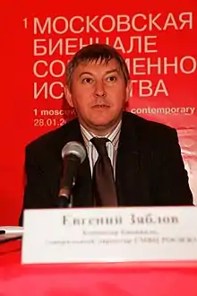 Evgeny Maksimovich Zyablov (Russian: Евге́ний Макси́мович Зя́блов, born 27 June 1960, Tashkent) is a Russian curator, manager, art publisher and entrepreneur, internationally renowned as Commissioner of the 1 Moscow Biennale of Contemporary Art (2005). Zyablov also was the Commissioner of the Russian pavilion at the 50th and 51st Venice Biennale of Contemporary Art (2003, 2005),[1][2] and at the 9th and 10th Venice Biennale of Architecture (2004, 2006) as well.