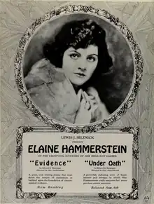 Evidence is a 1922 American silent drama film directed by George Archainbaud and starring Elaine Hammerstein, Niles Welch and Holmes Herbert.[1]