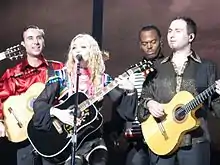 Authors Allen Metz and Carol Benson wrote in their book The Madonna Companion that the soundtrack gave Madonna "some of the post-disco queen/sex machine credibility she so desperately crave[d]".[55] Spin's Annie Zaleski noted that the soundtrack demonstrated Madonna's "astronomical growth as a vocalist ...Evita marked the start of Madonna's Serious Phase, one where she balanced youthful coquettish-ness with a more mature, introspective outlook".[56] In her review of the film, Janet Maslin from The New York Times complimented Madonna's ability to emote the songs, calling them "legitimately stellar and full of fire".[57] Writing for the Hartford Courant, Greg Morago complimented Madonna's "remarkable understanding of the material ... While some of the numbers have lost their sharp edge ('A New Argentina' lacks requisite anger), the recording benefits from its concentration on the characters' voices. There is a vibrant, contemporary energy and fearless cinematic sweep to this welcome new stamp on the mythic life of Eva Duarte de Perón".[3] Stefan A. Meyer, from The Herald Journal, felt that "there's a little something for everyone in Evita. It's a pop-culture clash that is sometimes quite annoying (especially in Rice's left-field rhymes) but still works like a charm".[58]