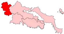 Evrytania is a constituency[2] in Central Greece represented in the Hellenic Parliament. This constituency corresponds to Evrytania prefecture. It elects one Member of Parliament (MP) by the Reinforced proportional representation system of election.