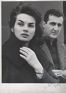 ![]() Krzyżewska with Veljko Bulajić in 1960 on the set of Atomic War Bride | |