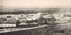 Exchange Hotel, also called Tebbett's Place was is a historical building in San Diego, California built in 1851. The Exchange Hotel site is a California Historical Landmark No. 491, listed on October 10, 1951. The Exchange Hotel was built by George P. Tebbetts and his partner Philip Hooff. Tebbetts became the third mayor of San Diego in 1852. Lieutenant George H. Derby stand at the Exchange Hotel when he arrived in San Diego to plan the Derby Dike in 1853. Soon after Exchange Hotel opened on June 29, 1851, a group of Free Masons had a meeting. This was the first Freemasonry meeting in San Diego. The group started a lodge which became San Diego Lodge No. 35, F. & A.M., the oldest lodge in Southern California.[1] Exchange Hotel became the Franklin House, when a third story was added to the Exchange Hotel by Messers Franklin. Joseph Mannasse owned the Franklin House for sometime. Racine & Laramie Tobacconist built both the Exchange Hotel and the Franklin House. The Franklin House was lost in an April 1872 fire, the site has been a vacant lot for sometime.[2][3]