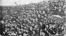 Club chairman Michael McGahey, directors Fred Parkhouse and George Middleweek (who paid for his own trip) and their wives, and fifteen players set sail in May 1914. Manager Arthur Chadwick was too ill to join the party, hence why McGahey travelled.[3] The boat trip to Argentina lasted three weeks, stopping off at Vigo, Madeira, Rio de Janeiro, Santos and Montevideo along the way. Yellow fever prevented passengers from landing in Recife and Salvador da Bahia.[1]