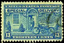 Special Delivery, a domestic accelerated local delivery service, was introduced on 3 March 1885 initially with a fee of 10¢ paid by a Special Delivery stamp. It was transformed into Express Mail, introduced in 1977 after an experimental period that started in 1970,[7] although Special Delivery was not terminated until June 8, 1997.[8]