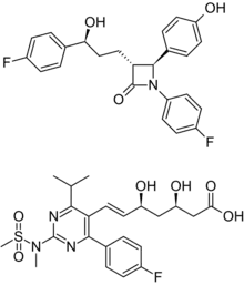 ![]() Ezetimibe (top) and rosuvastatin (bottom) | |