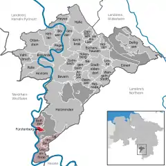 Fürstenberg (German pronunciation: [ˈfʏʁstn̩ˌbɛʁk] ) is a municipality in the district of Holzminden, in Lower Saxony, Germany and lies on the Weser river in the Weser Uplands, near Höxter and Holzminden. The Fürstenberg China Factory, founded in 1747, is the third-oldest porcelain manufacturer in Germany.