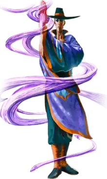 Within series lore, F.A.N.G is a master of Poison Hand Kenpō (毒手拳法, Dokushu Kenpō). F.A.N.G has developed the ability to resist poison of all types regardless of its strength or origins, due to his skill in mixing toxins as well as his training as an assassin. The idea of a fighter who uses poison in the Street Fighter games was originally considered during development of Street Fighter III: 3rd Strike, when the team members had a debate on including Remy or a different poison-using character.[1] F.A.N.G was originally conceived as a Shaolin monk archetype for the roster of Street Fighter V.[2] According to producer Koichi Sugiyama, the character's sleeves are wide as a hidden weapon style was one of the ideas they considered for F.A.N.G during the design stage, but the idea was eventually abandoned as returning character Vega already uses a claw.[1]