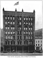 The White Building, 1881. Main and Erie Streets. A contemporary account noted of the fireproof building that "... in details of comfort and elegance it cannot be surpassed."[12] Demolished