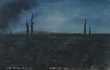 In May 1920 an exhibition of his work, at the George C. Clackner Gallery at 20, Old Bond Street, London, included 30 paintings.[5] Their buyers included Lieutenant General Hubert Gough, who had commanded the British Fifth Army from 1916 to 1918, Major-General John Ponsonby (Gough's successor), the American actress and singer Elsie Janis, John Wodehouse, 3rd Earl of Kimberley, Gwendolen Fitzalan-Howard, Duchess of Norfolk, and Nancy, Lady Astor.[5][7] A review in The Daily News of 7 May 1920 was headlined:[1][10]