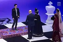In January, at the 74th Tata Steel Chess Tournament A in Wijk aan Zee (previously known as Corus Chess), he finished on place second together with Magnus Carlsen and Teimour Radjabov, behind the winner Levon Aronian.[16] In March at the 27th Reykjavik Open in Reykjavík, Iceland, he finished first with 7½/9.[17] In May he won the 20th Sigeman & Co Chess Tournament, an eight-player round-robin tournament, in Malmö, Sweden, with 5½/7, half point ahead of Peter Leko.[18] June saw him at the 7th Tal Memorial where he finished second with a score of 5½/9 after tiebreak with Teimour Radjabov behind Magnus Carlsen.[19] By July, at the 40th Dortmund Sparkassen Chess Meeting, he was victorious once again with a score of 6/9 after tiebreak with Sergey Karjakin.[20] In the fall, in the period from September–October, he played in the Grand Slam Chess Final in São Paulo and Bilbao, Caruana won 4 games, drew 5 and lost 1, tying for 1st with Magnus Carlsen, but eventually losing both blitz tiebreak games and thus ending 2nd.[21] In November at the 6th Kings Tournament, organized in Bucharest by the Romanian capital chess club, Caruana tied all the games to get third in a shortlist, yet strong tournament (average Elo 2747) behind Vasyl Ivanchuk, winner, and Veselin Topalov, runner-up.[22]