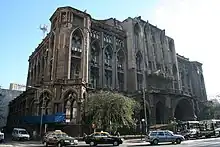 The faculty had its seat at the Illuminated Block, on Perú 222, up until it was relocated to a Neo-Gothic building on Las Heras Av. in the Recoleta barrio in 1948. The former headquarters of the Eva Perón Foundation, on Av. Paseo Colón 850, was additionally granted to the faculty in 1956, in the aftermath of the 1955 coup d'état.[4] The ten six-meter high statues on the roof of the headquarters, representing the "descamisados", were designed and sculpted from Carrara marble by the Italian sculptor Leone Tommasi and installed in 1950. In 1955, after the coup d'état, the statues were removed and thrown into the Matanza River, from where, in 1996, by order of President Carlos Menem, only three were found and were retrieved. The three statues can currently be seen in San Vicente where Juan Perón is buried.[5]